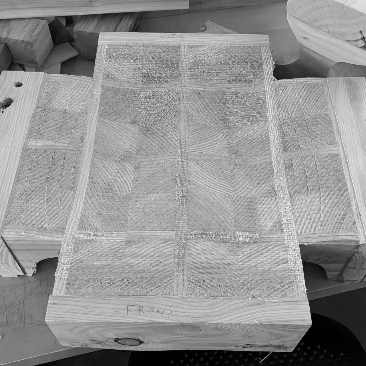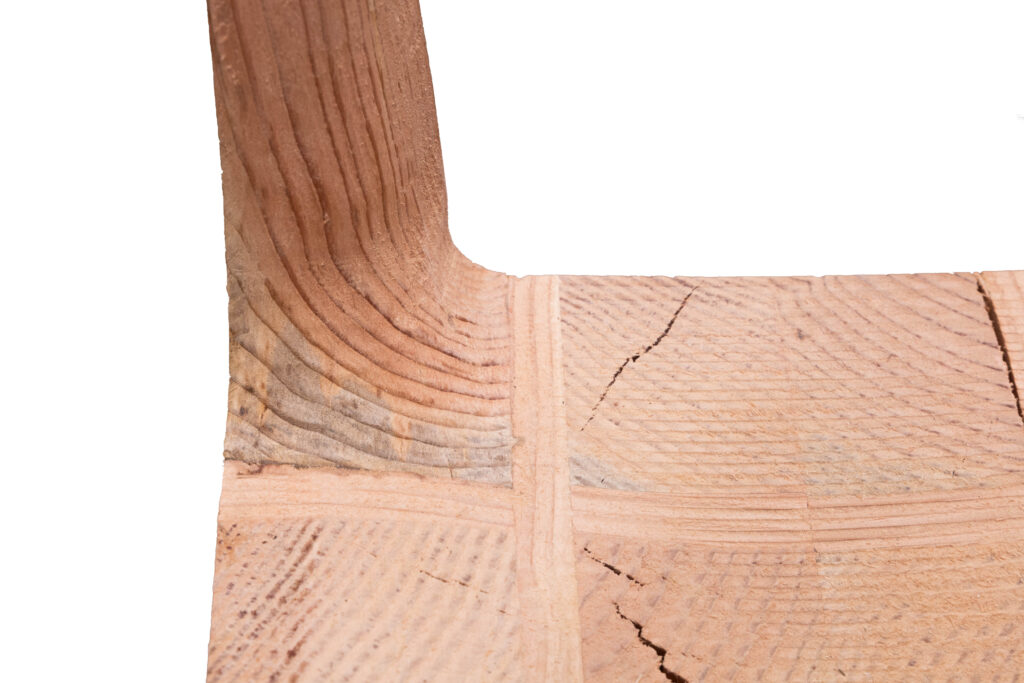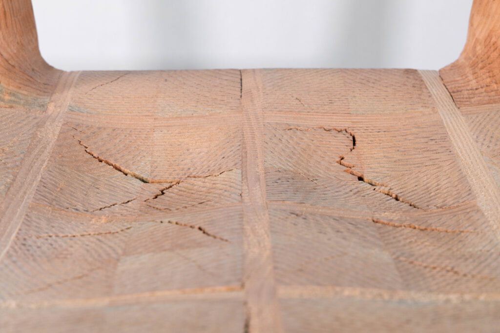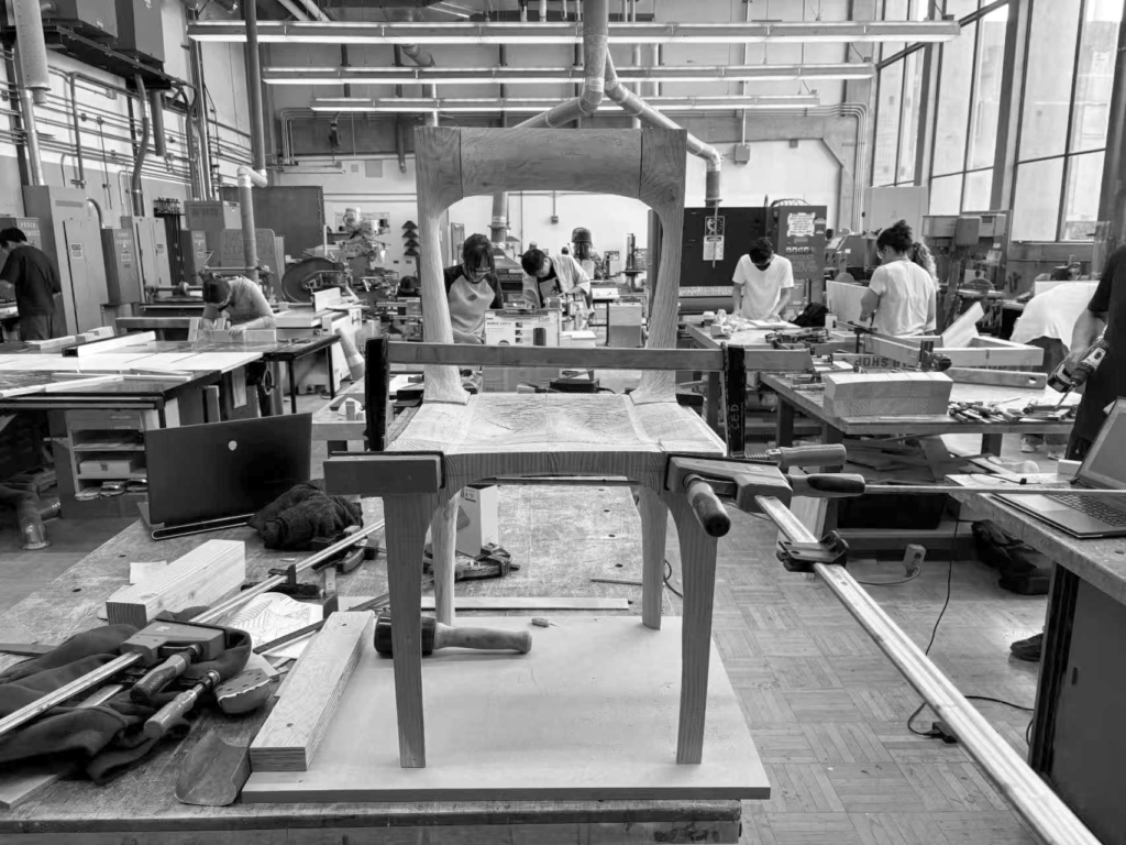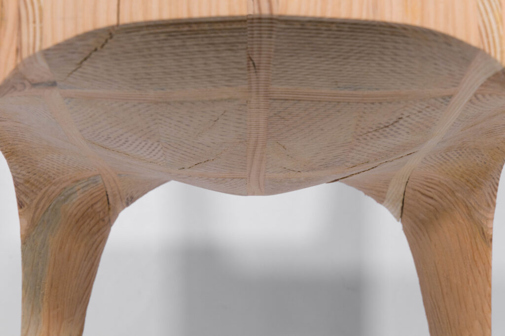 This project is the second assignment in the Master of Advanced Architectural Design program at UC Berkeley. Students were asked to design and fabricate a chair using raw dimensional lumber (1″×2″, 2″×2″, 2″×4″, 4″×4″, and 2″×6″) as the primary material. The freshly cut Douglas fir lumber retained a high moisture content, which led to visible cracking in the chair seat during the drying process. However, due to the chair’s structurally driven design, these cracks did not compromise its structural safety, and the chair is able to stably support the weight of a heavy adult.